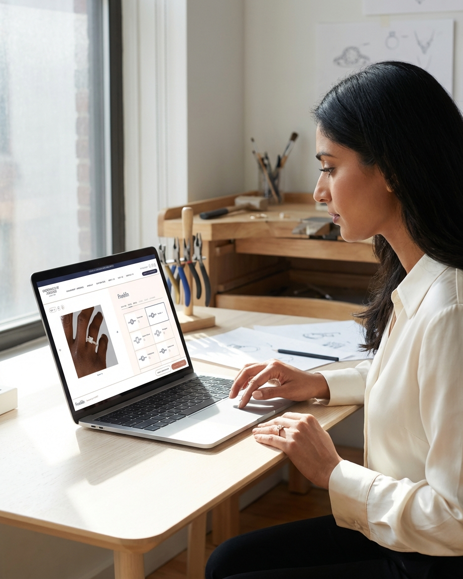 Scale your jewelry business by empowering customer creativity, boosting engagement, and driving higher ROI on every sale, on your website and in-store.