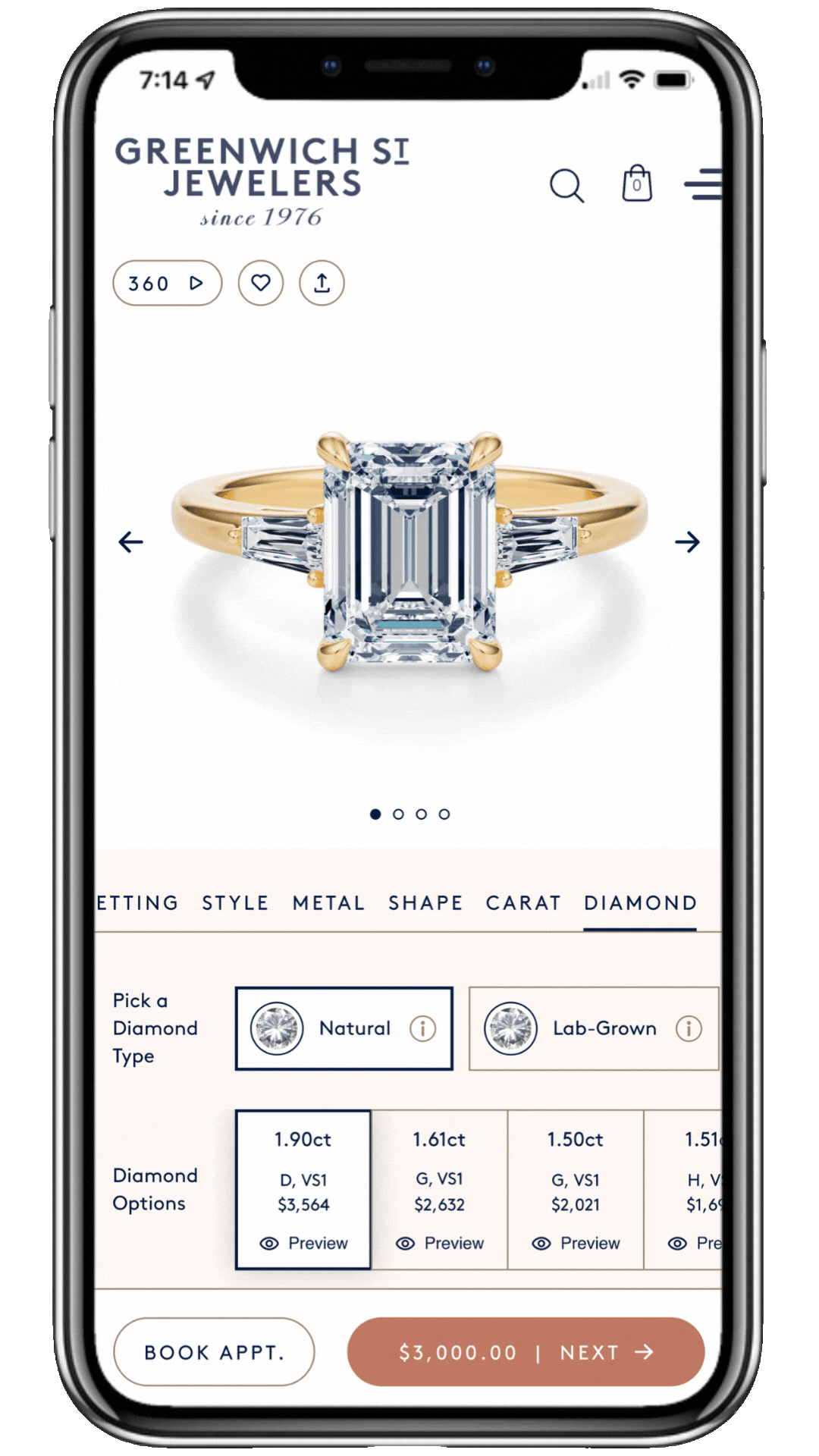 Visuals & Certification: Users have the ability to download the stone’s certificate, as well as view a video of the exact stone to ensure it’s the right choice.