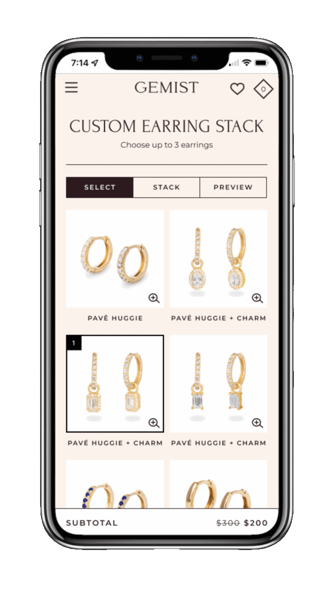 “What do these look like together?” is a question you’ll never have to hear again. Consumers can visualize how your jewelry stacks together within every category, allowing them to get excited about multiple pieces at once, ultimately increasing units per transaction sold.